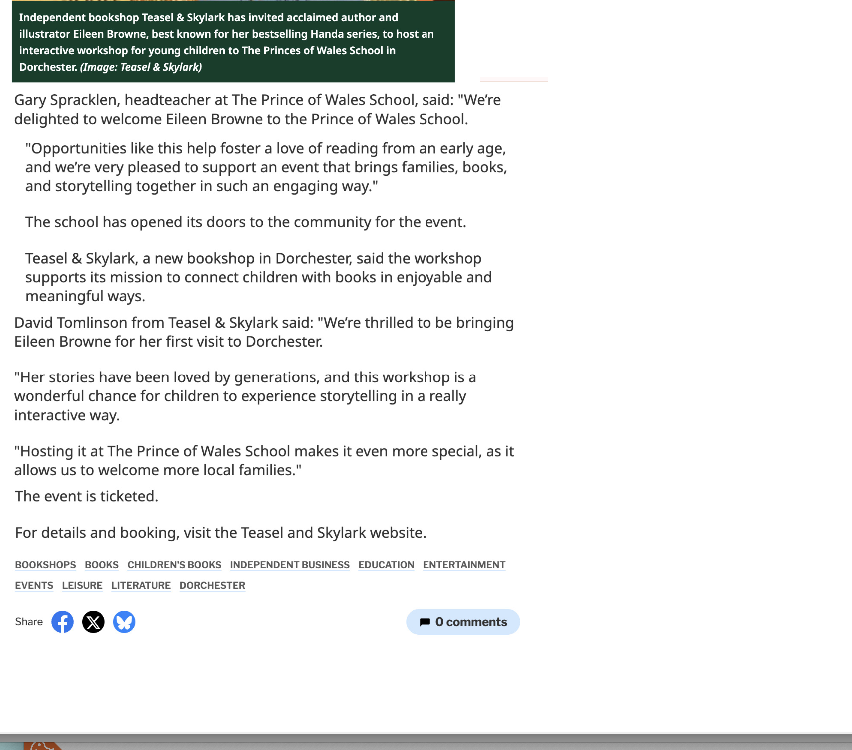 The workshop is ideal for 3 to 7 year olds and is sure to be a memorable and fun morning. It takes place at The Prince of Wales School in Dorchester on Thursday 9 April from 10.30am.