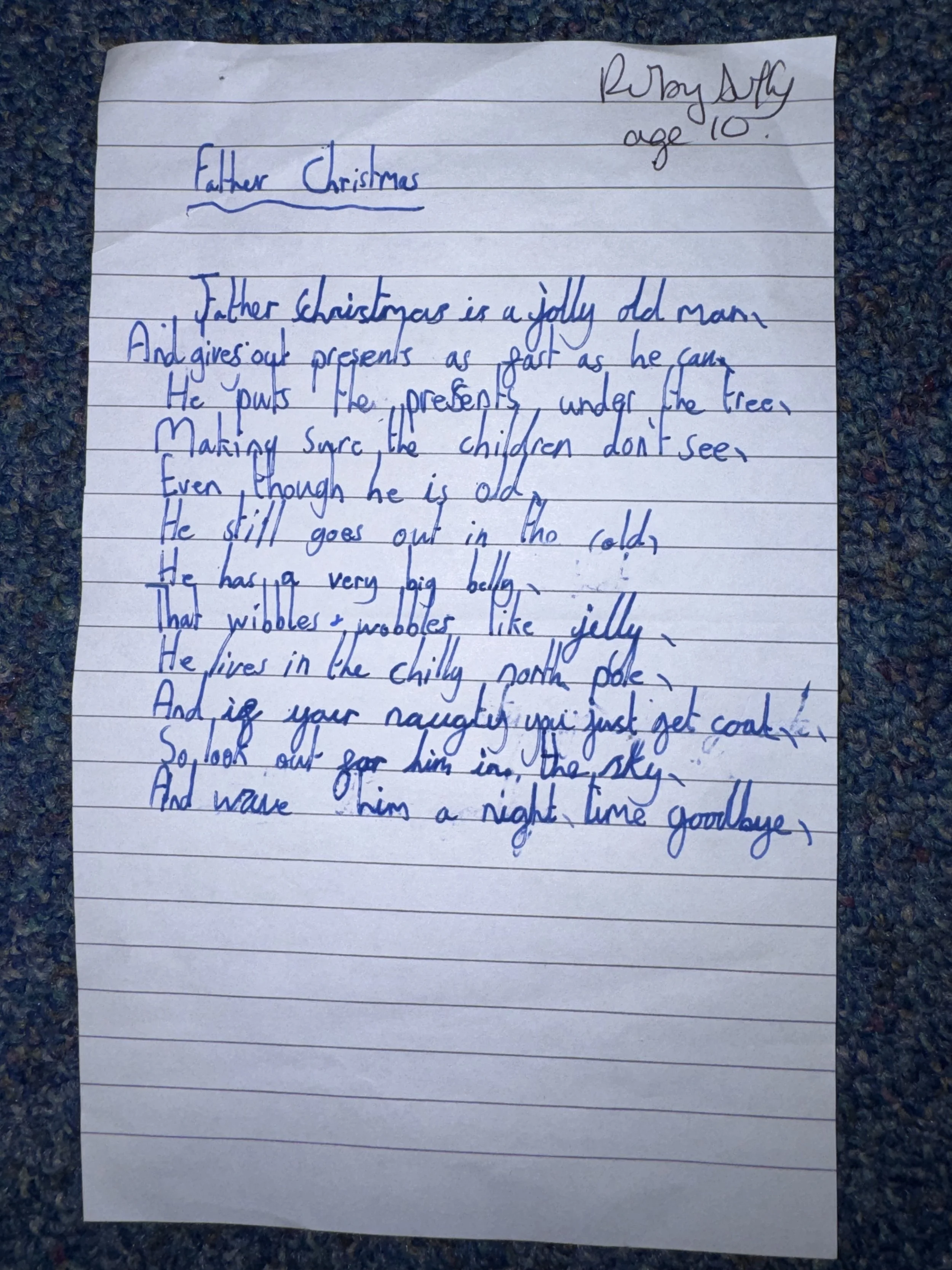 Our pick was by Teddy Pink (6) and his poem can be seen in the photo below.