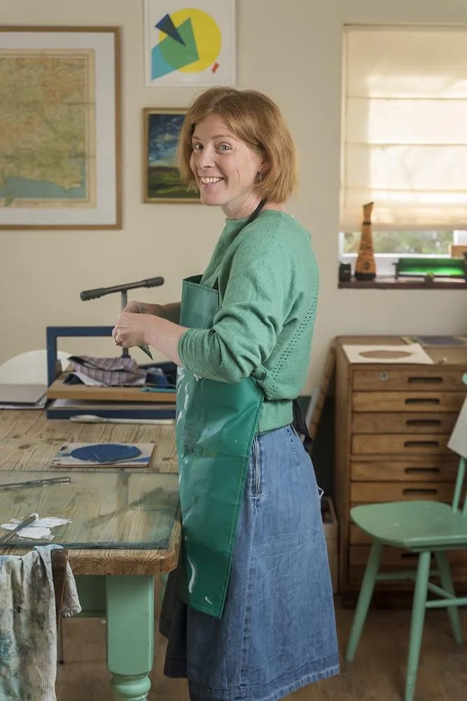 Rebecca is a printmaker inspired by Dorset's coast, countryside and wildlife. She works mainly with linocut using traditional multi-block or reduction printmaking techniques. All her prints are made by hand in limited editions, with each print numbered and signed. Her prints are available in a range of galleries and shops in the UK. Recent commissions include the cover illustration for Adam Henson's book 'Two for Joy' and her designs are currently featured on greetings cards for the National Trust.