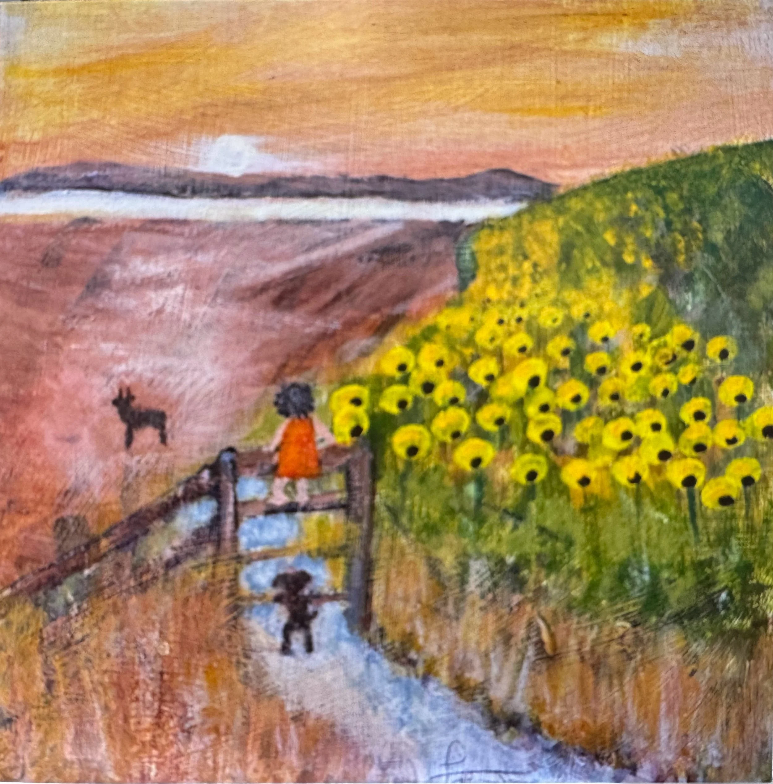 It starts with a verse. Arising in a joyous moment of rare presence and awareness, words and rhythm begin to form and it’s then I know I have my next painting. An early riser and keen runner, I find that life in the countryside offers so much to appreciate. The vibrant, ever changing palette of the land and sea, the fascinating and often funny creatures who inhabit it, and the quirky, warmhearted folk who live on it and from it. The opportunity for joy is in great abundance. Born in Scotland in 1970, I made Dorset my home 15 years ago. My tomboy childhood - racing about the fields and forests and swimming in the sea at every opportunity, usually with my dog at my side - is never far behind me. Life is good!